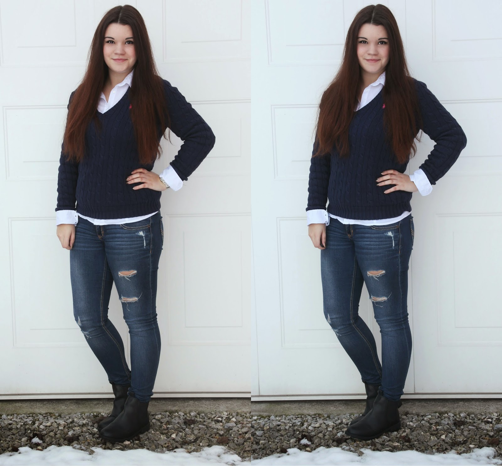 pullover - ralph lauren / bluse - pimkie / jeans - hollister / boots - h&m / tasche - michael kors
